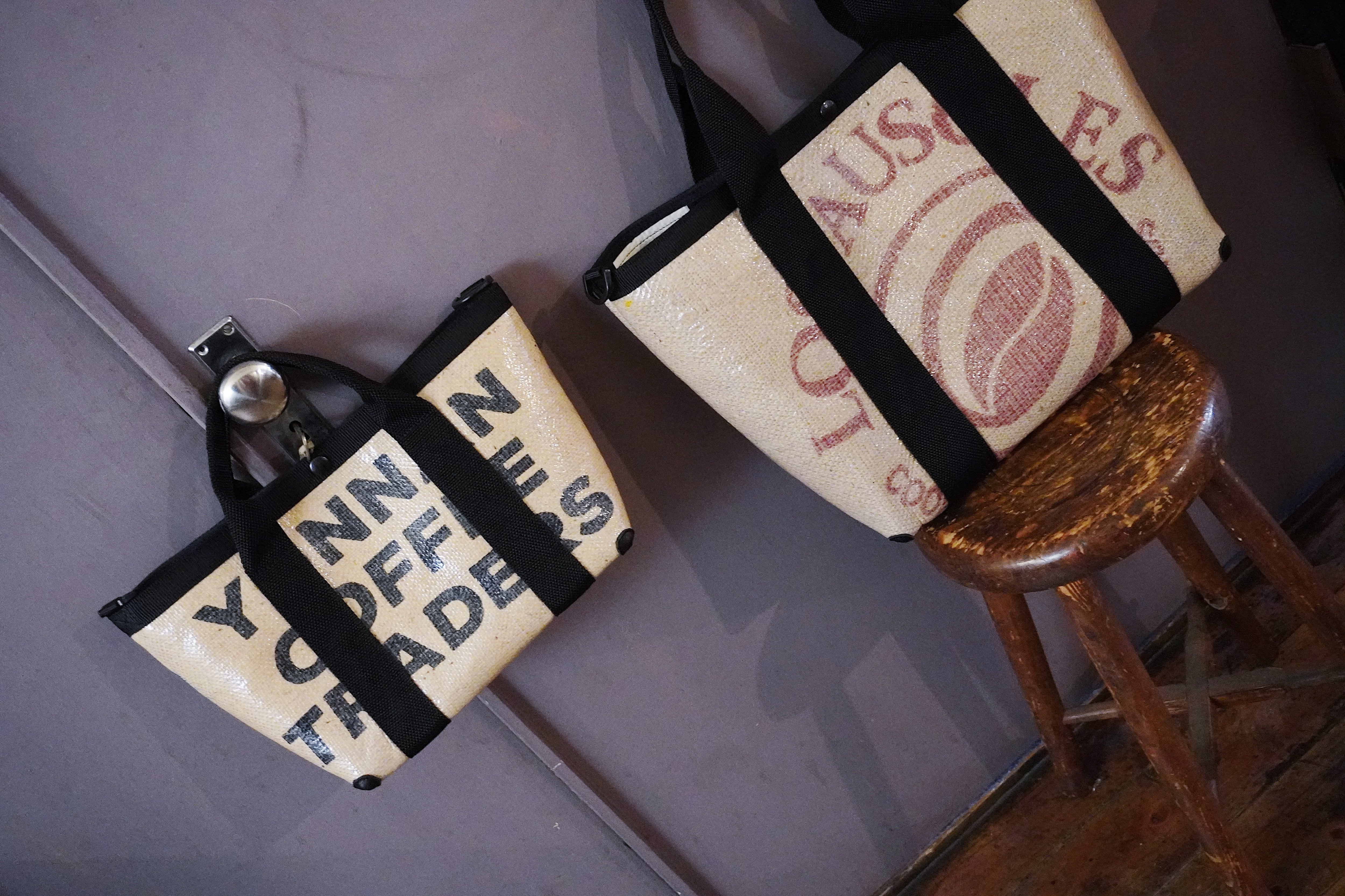表面はPVC加工し、裏面は綿ツイルを圧着しており、口前や四つ角にも革を当てているので長くお使いいただけます。
