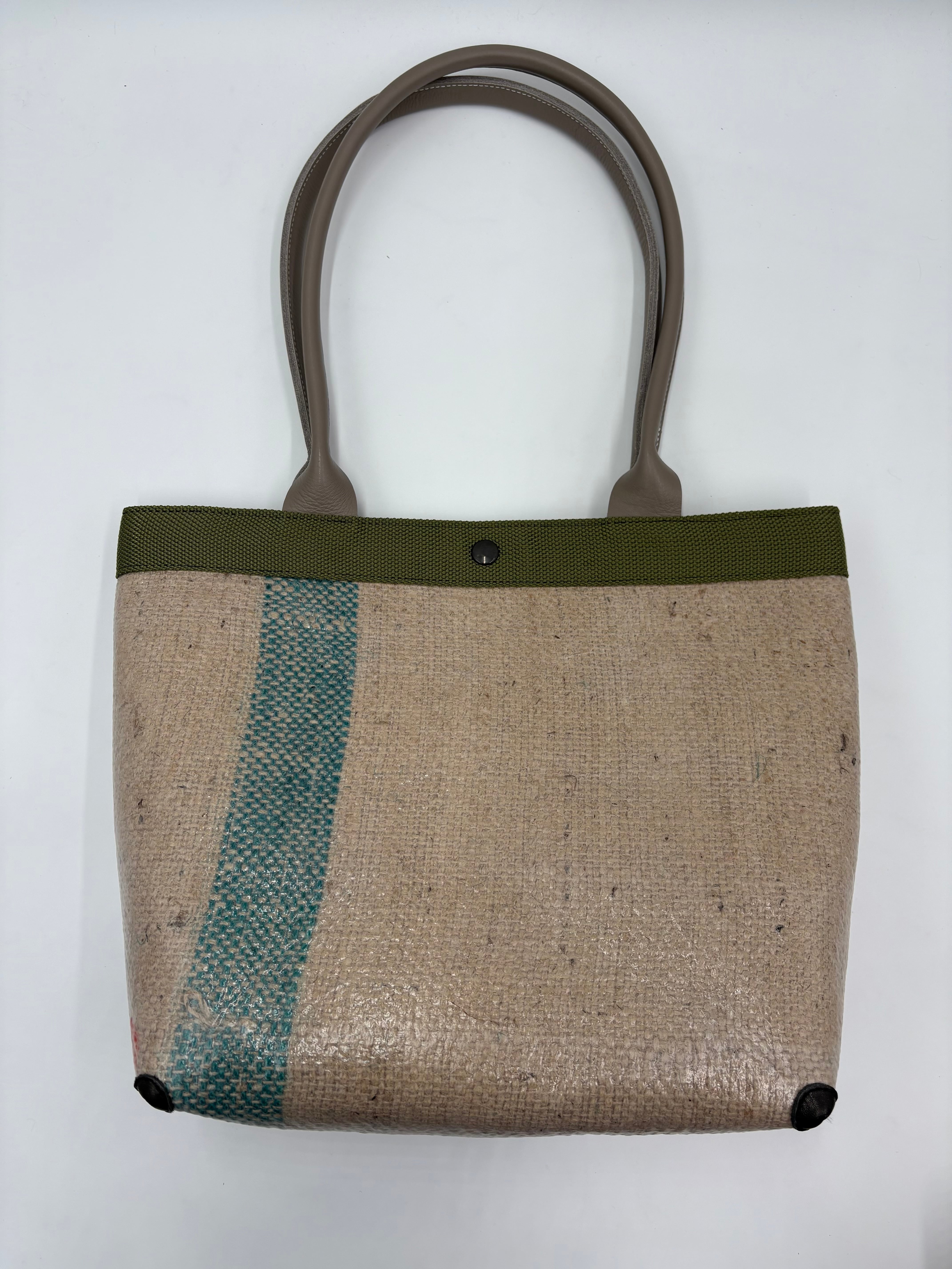 コーヒーの麻袋に両面コーティングを施し、防水性のある生地に仕上げています。