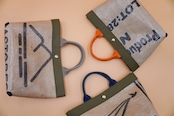 表面はPVC加工し、裏面は綿ツイルを圧着しており、口前や四つ角にも革を当てているので長くお使いいただけます。