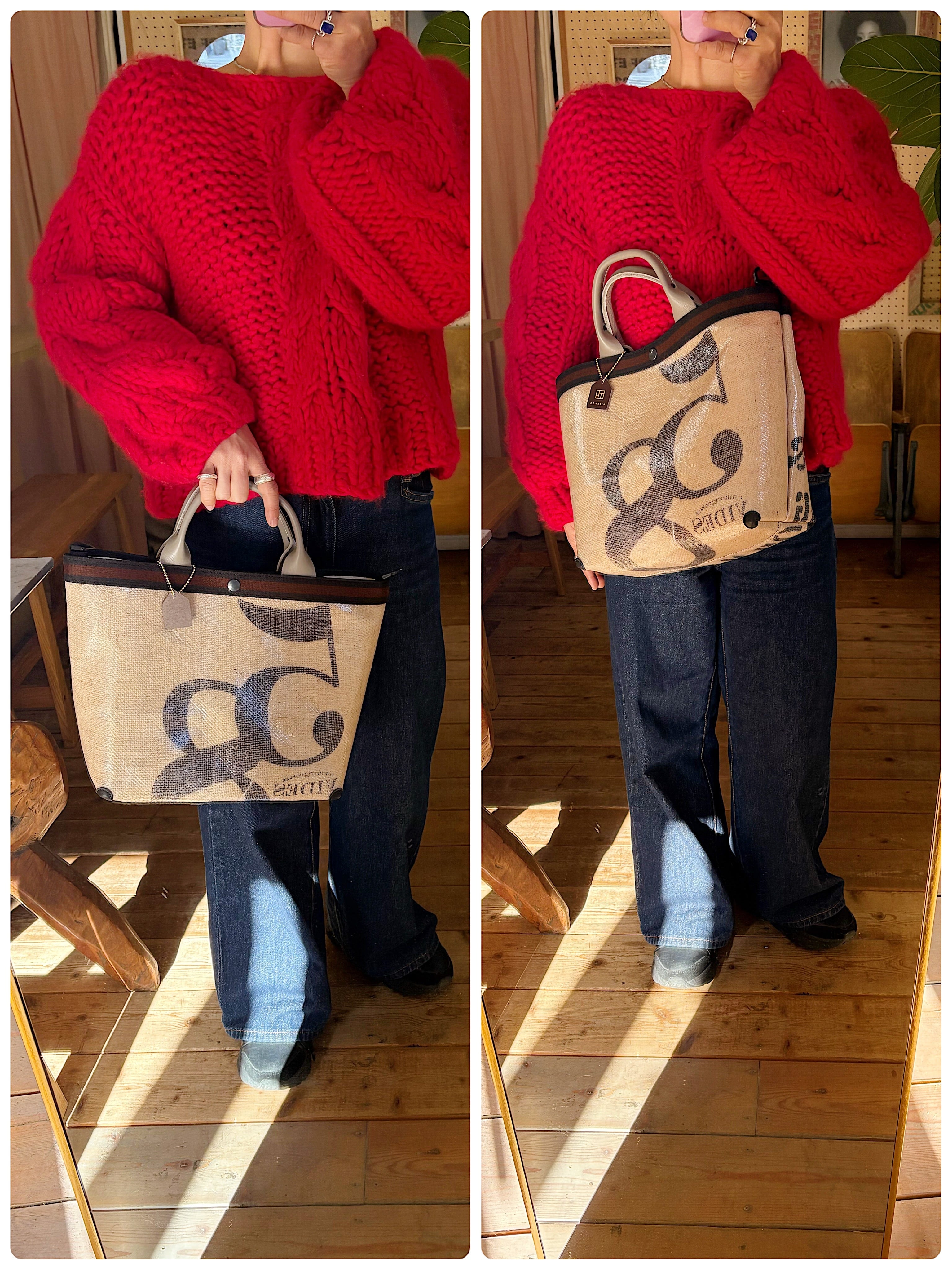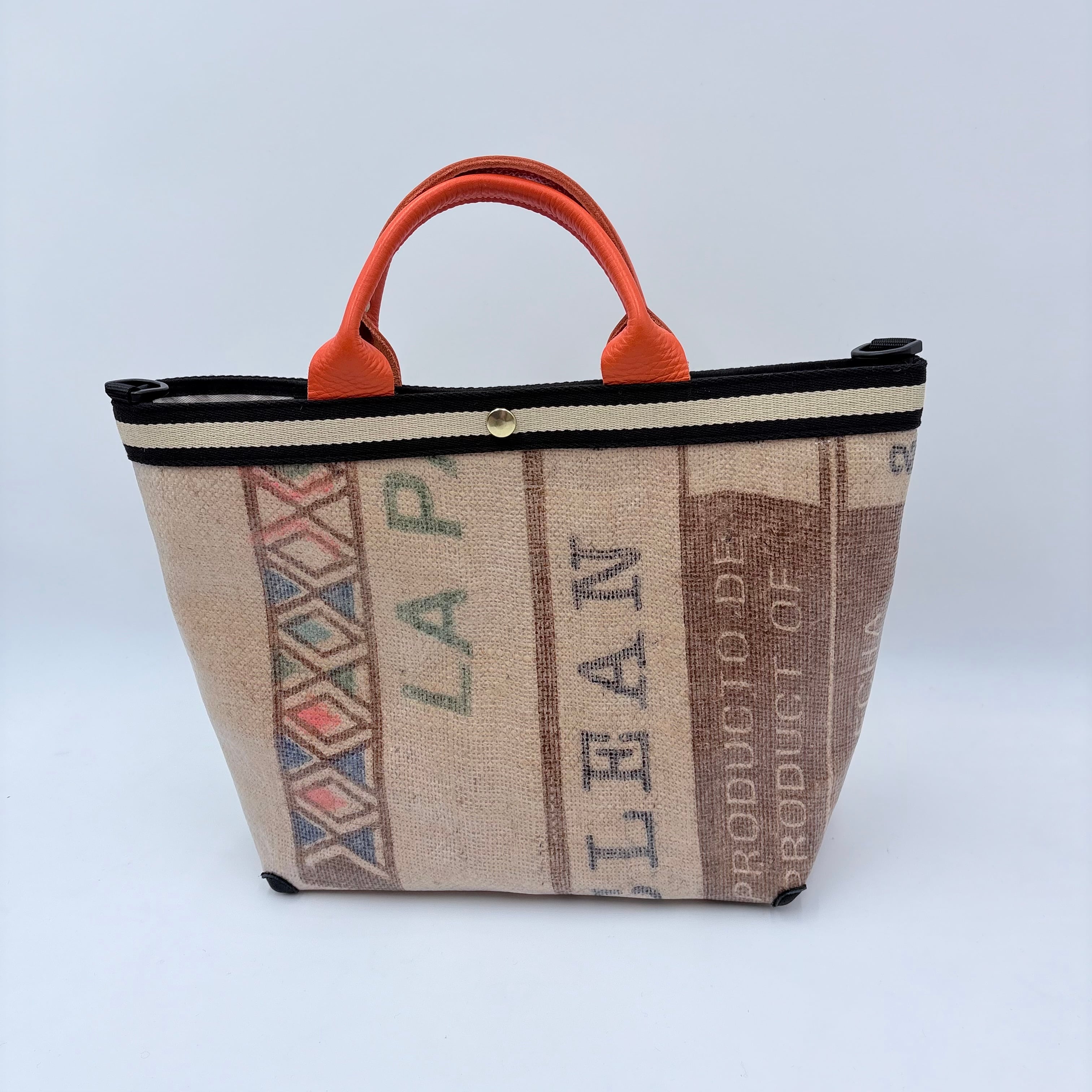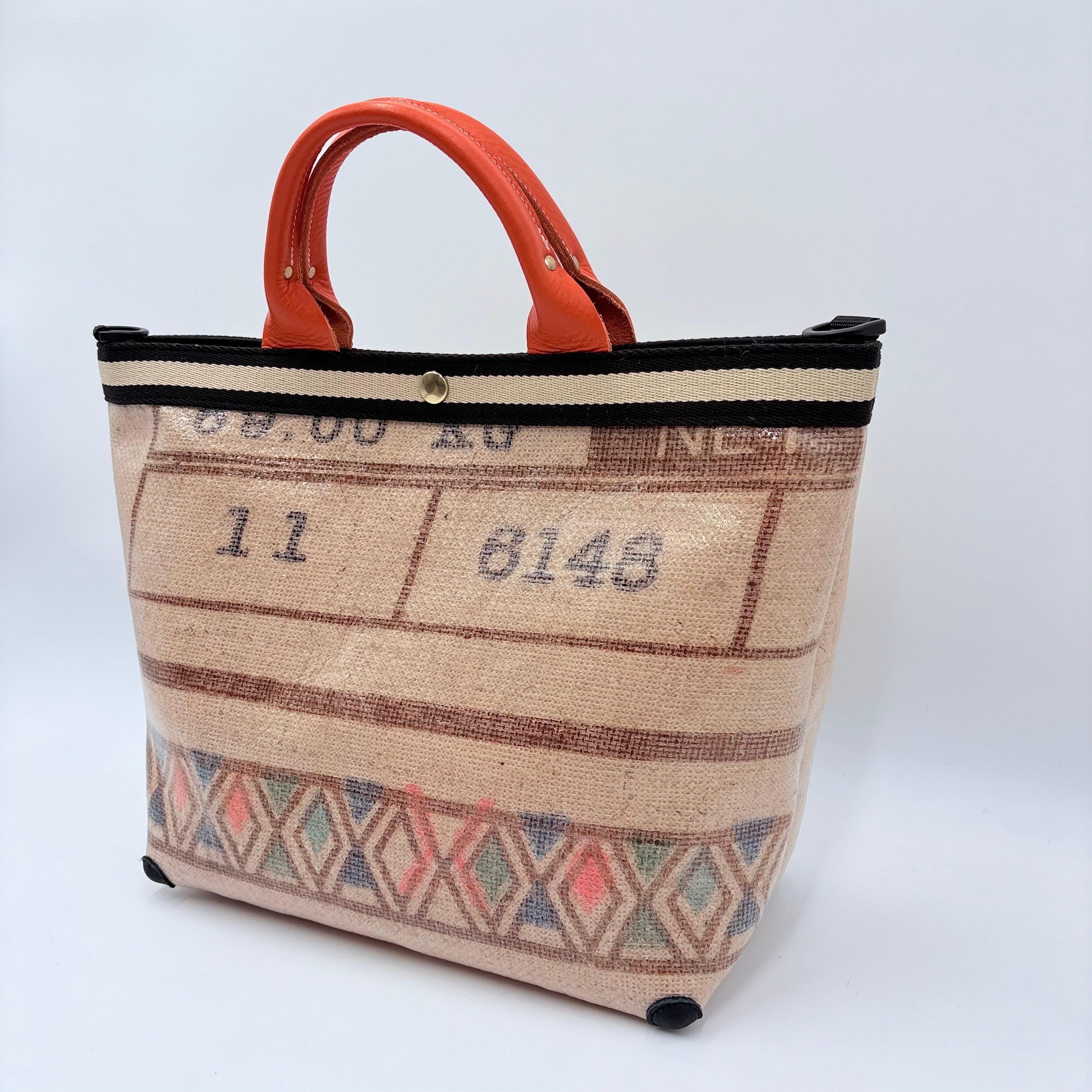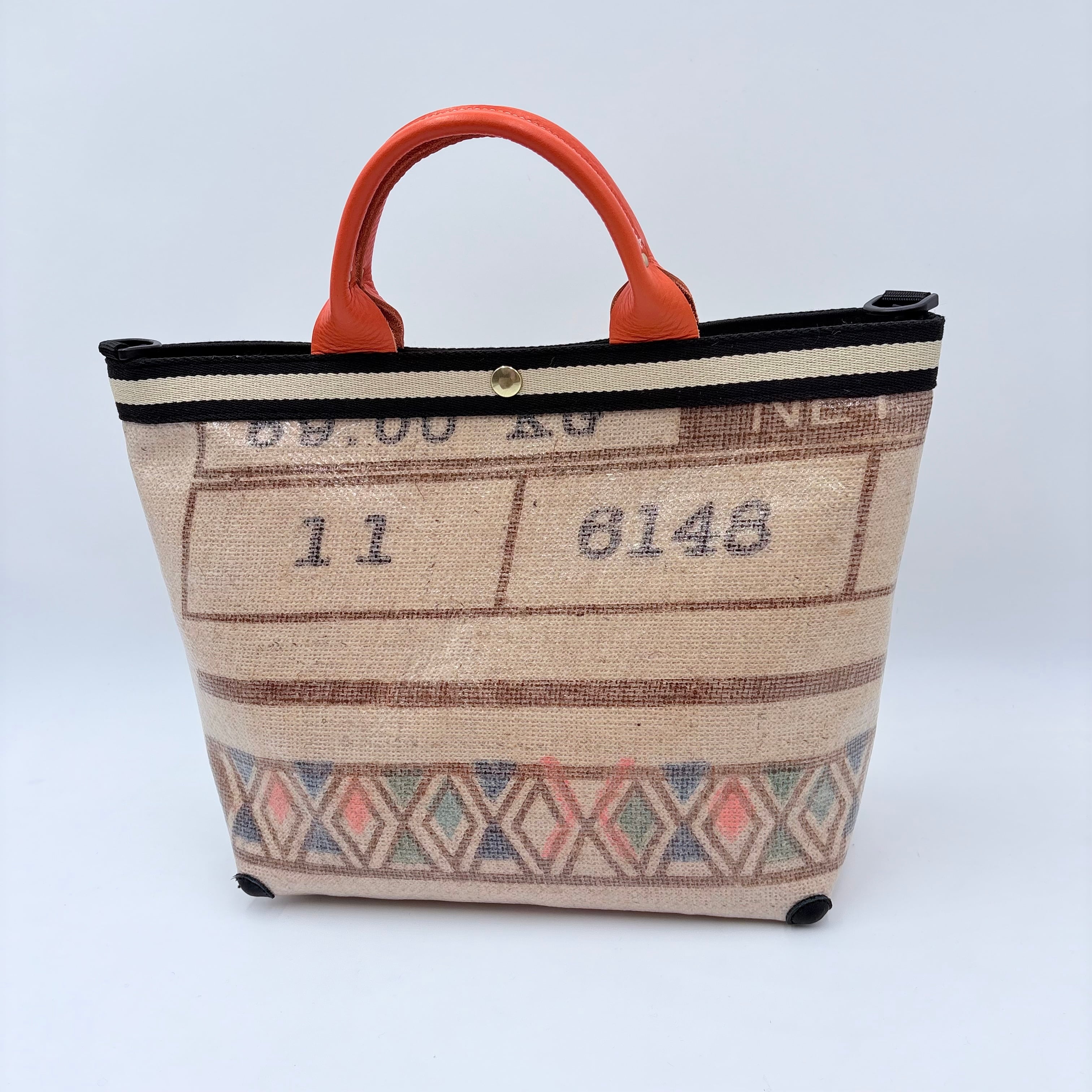表面はPVC加工し、裏面は綿ツイルを圧着しており、口前や四つ角にも革を当てているので長くお使いいただけます。