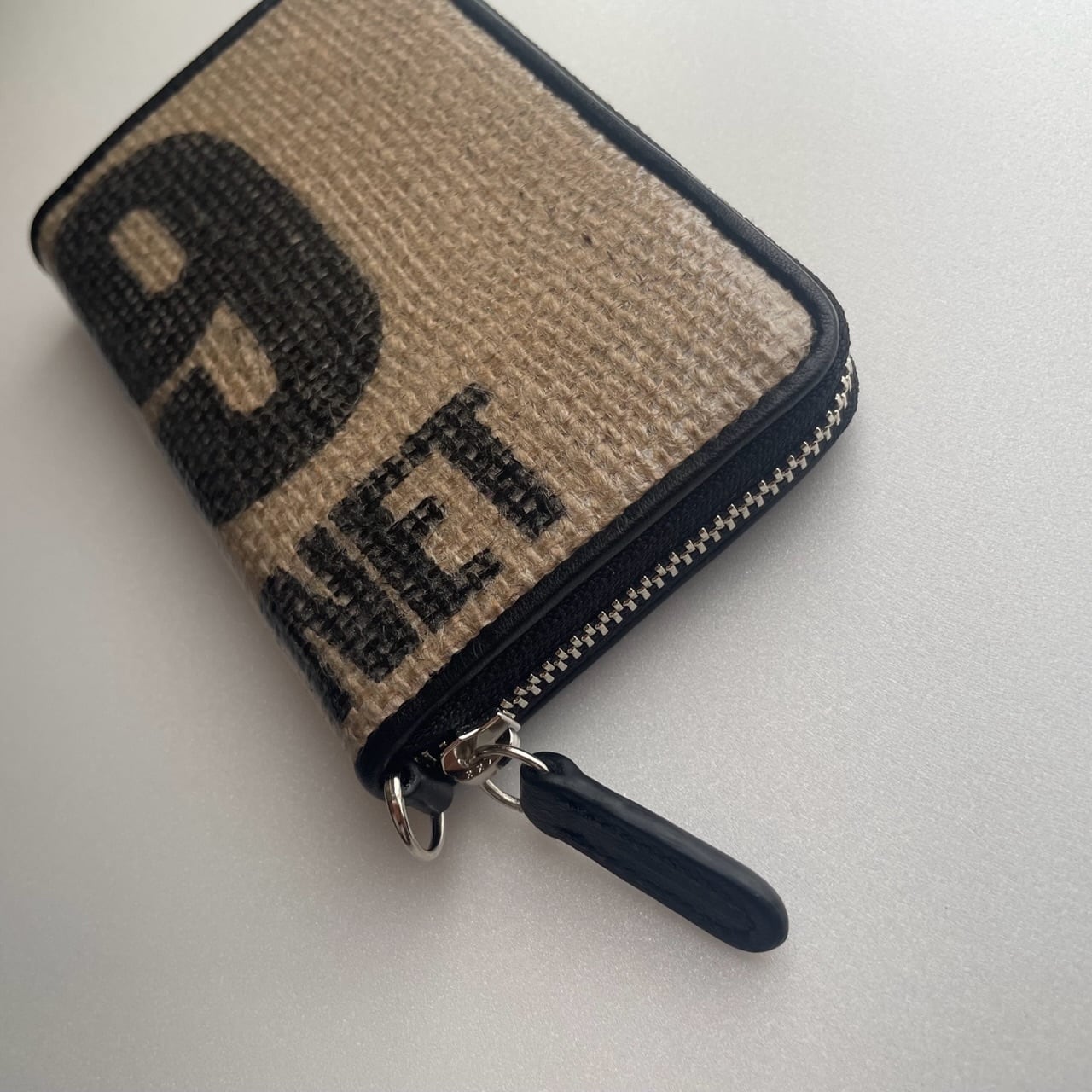 経年変化を楽しめるオイルレザー×麻袋のコンビ財布になり、長く使うほどに程よい光沢感が出てきます。