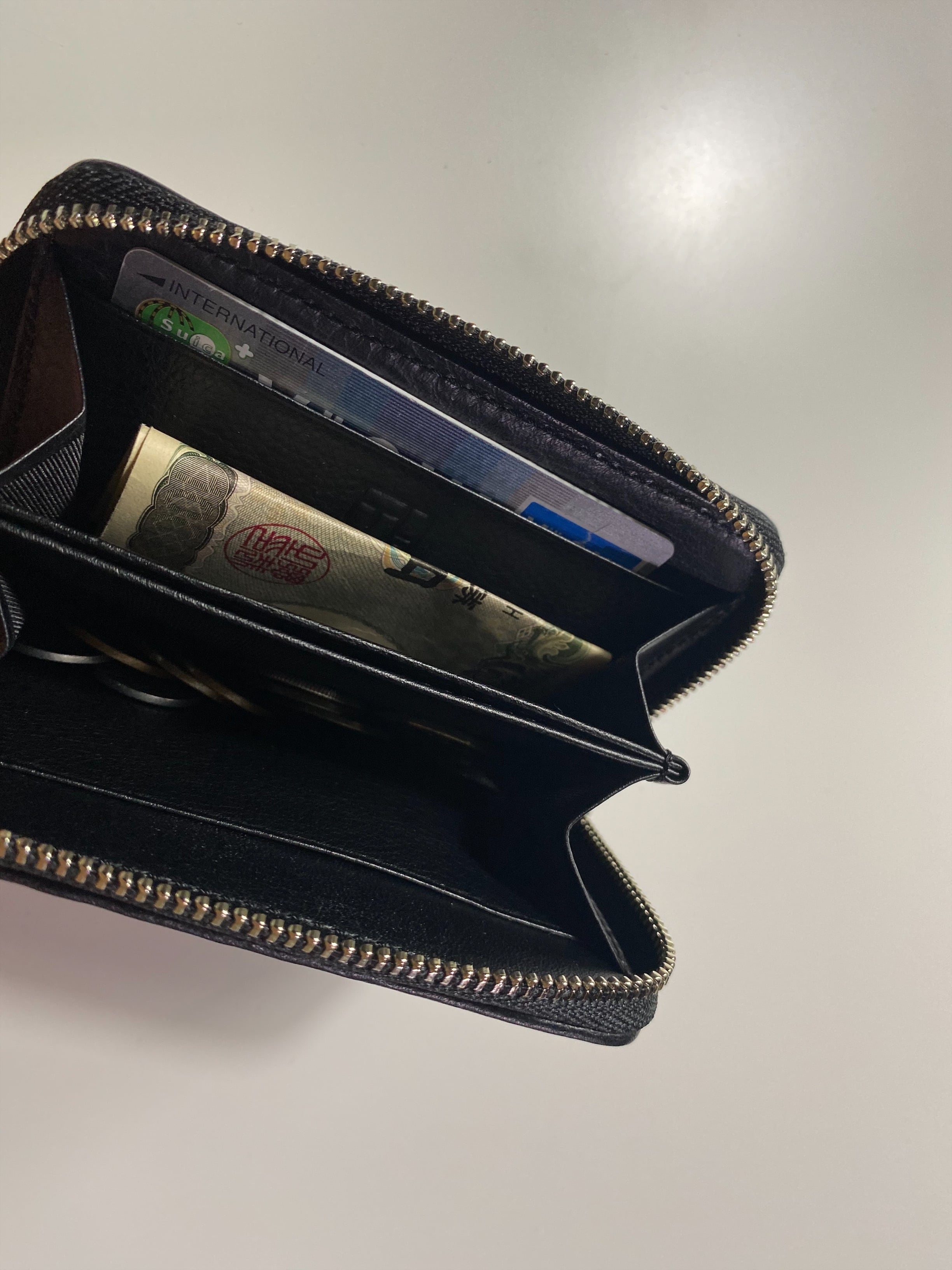 カードポケットも二ヶ所あり、小銭や紙幣も折りたたんで収納できます。