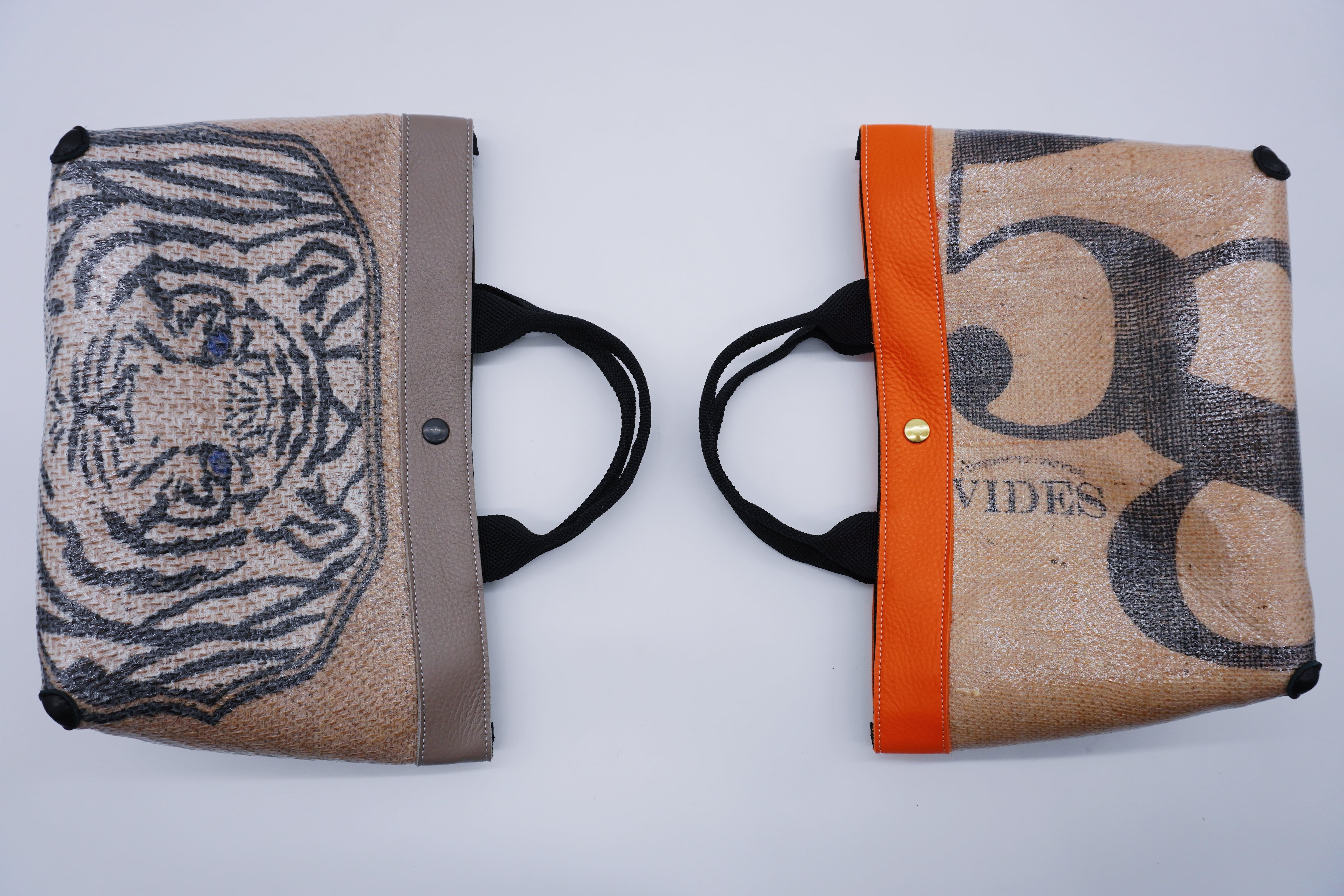 表面はPVC加工し、裏面は綿ツイルを圧着しており、口前や四つ角にも革を当てているので長くお使いいただけます。