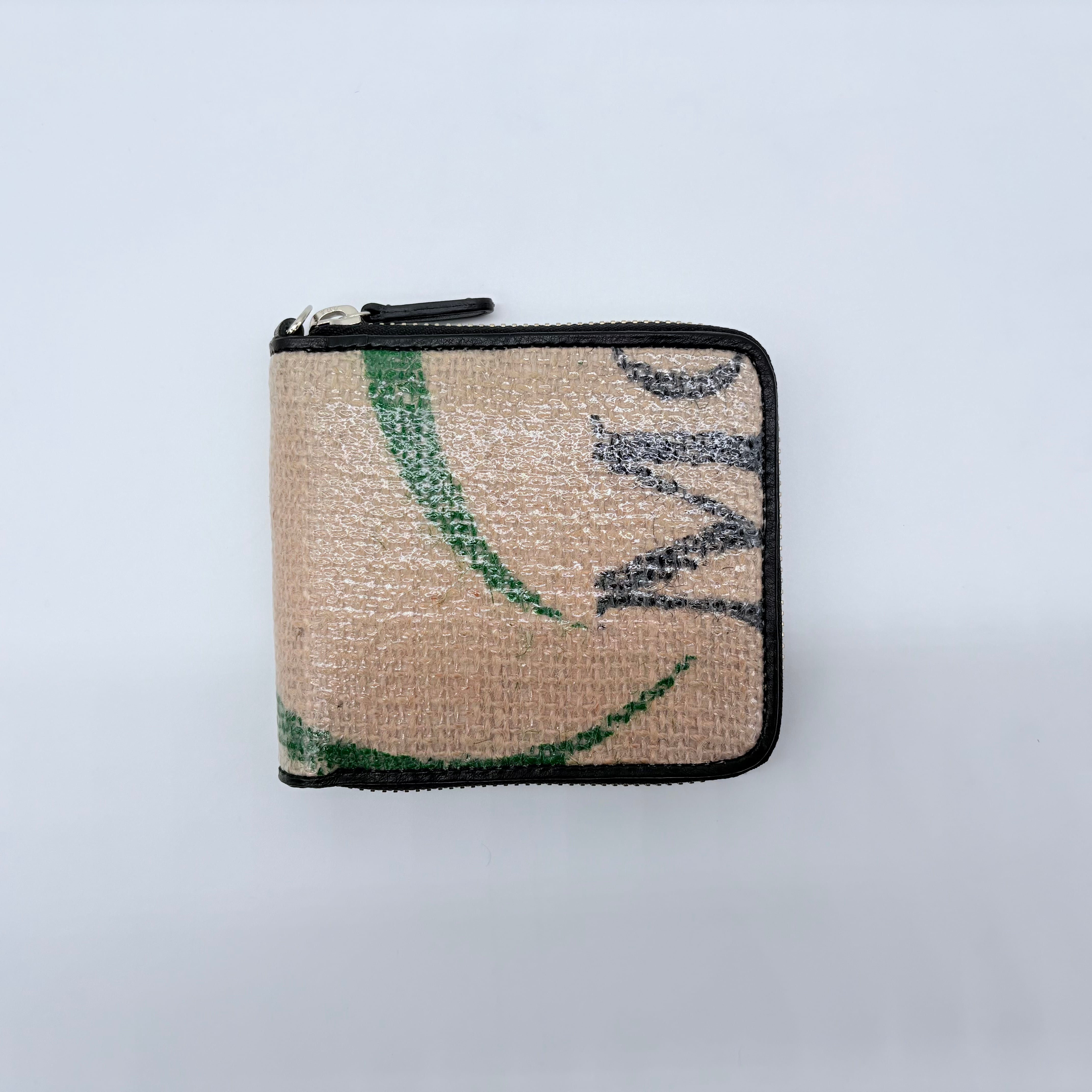 表生地はオリジナルの防水性のある麻袋のアップサイクル生地なので雨に濡れても大丈夫です。
