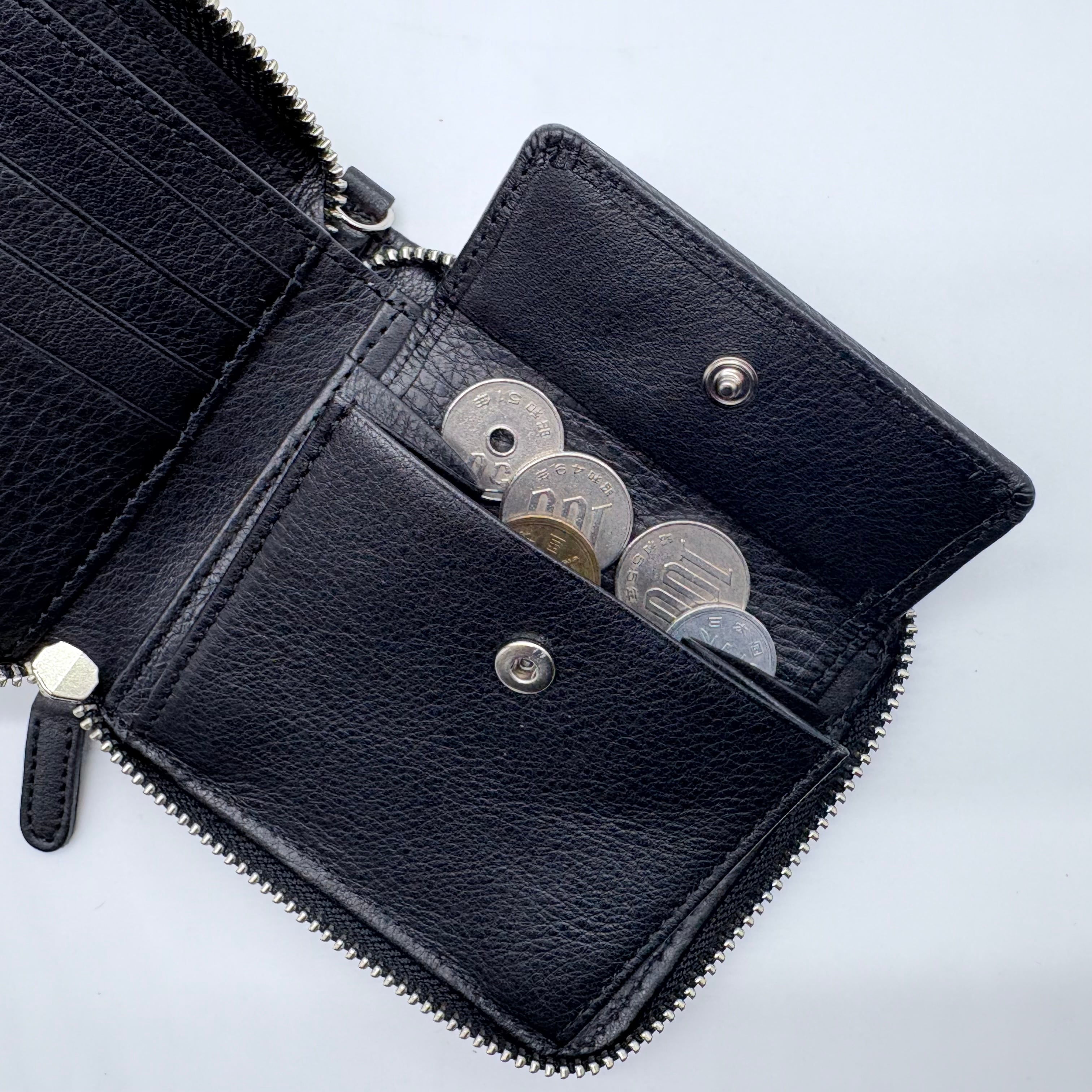 お札のポケットが2つ、小銭入れ、カードのポケットが6つあり、収納力あります。
